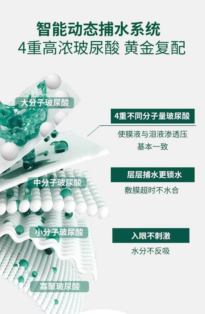 4重高浓玻尿酸黄金复配,组成「智能动态捕水系统」,深入肌源导水-补水-锁水。调整膜液渗透压,肌肤吸饱水即停止补水,看球忘了时间也不会让脸被泡发、伤害肌肤屏障。