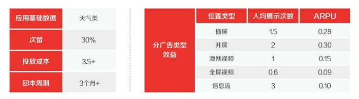 以在巨量引擎、穿山甲平台投放的某款App为例,天气类产品的广告变现回本周期约为三个月。