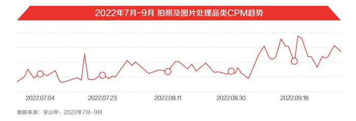 •商业化表现:穿山甲数据显示,拍照及图片处理品类的广告请求量及收入水平居Top20,商业化表现中等偏上。三季度,品类CPM波动上涨,发展态势良好。