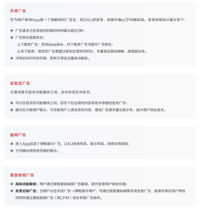 分广告样式来看,信息流的人均展示次数最高,可达3次;每用户平均广告收益则是开屏类型最高。