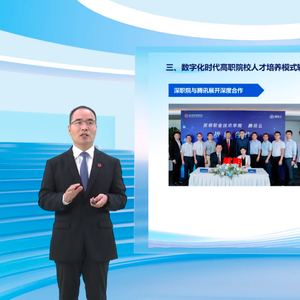 11月30日,2022年腾讯全球数字生态大会举办。深圳职业技术学院校长、研究员、博士生导师许建领出席智慧教育专场,发表《数字化时代高职院校人才培养模式转型》主题演讲,分享了他对于数字化时代高职院校人才培养模式转型的思考,并介绍了深圳职业技术学院(以下简称“深职院”)与腾讯联手打造具有行业示范价值的新型校企合作模式,共育符合产业互联网发展需求的复合型、应用型创新人才的实践。