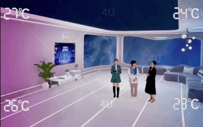 本次海尔空调的产品直播中设定了几个在元宇宙空间中发生的生活故事场景,其中空间场景的打造均由世优科技提供虚拟制作技术支持。