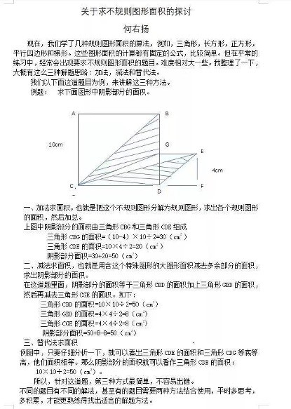 五六年级的同学以“生活中的数学”、“奇思妙想巧解题”、“我的数学小实验”为主题,将对数学的感悟写在小论文里,拓宽数学视野,提高同学们学数学、用数学的能力。