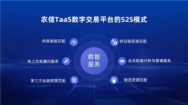 农信TAAS数字交易平台之所以能够赋能农牧产业供应链,是基于农信数智打造的采销一体化的S2S(SaaS To SaaS)的平台模式,聚焦平台化服务理念,围绕营销云、采销云及物流云的供应链云服务体系,通过产品和技术赋能,数字化升级加速了产业链各环节融合,将供货商、分销商和采购商三者无缝结合,打造数字供应链服务生态,推动农牧产业里的效率革命。