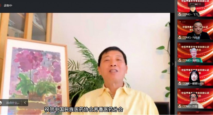 11月30日,由中国民族医药协会芳香医药分会主办、中国民间中医医药研究开发协会芳香芳疗产业分会协办、芳香码头生物科技有限公司承办的“芳香手作专业技能认证“课程发布会在线上举行,河南中医药大学药学院副院长、河南省教学名师纪宝玉,中国民族医药协会芳香医药分会会长王晓龙,《中国化妆品》杂志执行主编刘丽等出席会议。云南省标准化协会理事长林承杰,陕西中医药大学药剂教研室主任张小飞,微博千万粉丝博主、俊平品牌创始人方俊平等向发布会发来了祝贺视频。因疫情原因,发布会以线上直播的形式召开,来自各领域的专家、学者、芳疗从业者、学员等近200人与会。