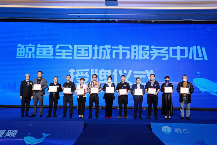 最后,大会现场还进行了13家鲸鱼城市服务中心的授牌仪式和鲸鱼公测版的发布启动仪式和国内知名工厂品牌签约仪式。