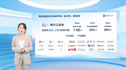 腾讯云计算产品总监肖娜介绍,目前,遨驰CPU调度核数超过1.5亿核,覆盖20+行业的300+企业级客户,为树根互联、四川华拓、中国银联等行业标杆的数字化转型提供支持。