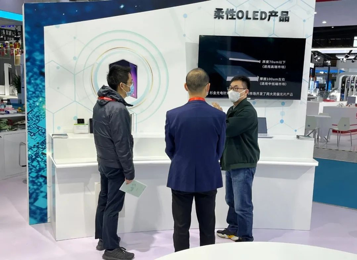 环保型偏光片(Eco-friendly Polarizer)绿色、可持续发展逐渐成为经济社会发展的重要原则,也是企业活动的基准。杉金光电致力于通过技术创新应对气候变化的挑战,通过开发绿色环保型偏光片产品,助力低碳经济发展。偏光片用粘着剂(PSA)主要成分为高分子聚合物,生产过程中需要添加有机溶剂来实现良好涂布性能。杉金光电通过多年来对树脂成分设计和配合方面的研究,成功实现了在降低了VOC溶剂含量的同时,确保良好的涂布性和物性,由此大大降低了RTO燃气浓度,减少了VOCs排放。不仅如此,为了实现VOC Zero的终极目标,杉金光电还展开UV硬化的无溶剂PSA应用研究,攻克技术壁垒,将杉金光电核心技术之一的UV硬化工艺扩大应用在PSA生产加工工艺中。UV PSA的开发原理是采用固含量100%的材料,不仅能实现VOC Zero,而且硬化过程中不需要热处理,节约能源。UV PSA更容易进行配方设计,可满足客户定制产品的开发需求。除此之外,杉金光电还根据市场和客户需求,持续开展如LAP,Haze PSA等可以大幅提升显示产品性能的高性能PSA的研究开发工作。中小型偏光片(Mid&small Size Polarizer)中小型偏光片是杉金光电完成并购交易后,重点强化的领域。目前市场使用的偏光片正向着高透过、薄型化的方向发展。特别是智能手机,在5G时代,由于其用电量高,电池厚度增加,对偏光片薄型化的需求提高。杉金光电利用多年来所积累的工艺和材料技术,通过去除一层TAC层,开发出比现有产品厚度可大幅降低的产品;除了光特性和结构开发技术之外,还确保了异形加工能力,积极对应中小型显示市场需求。在中小型偏光片展区,杉金光电展出了分别应用于VR glass、Mobile、平板电脑上的偏光片产品。