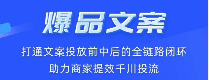 爆品文案功能 整合了商品最新最热卖点、全网热卖商品描述与文案,通过AI智能推荐,为商家提共爆款文案参考,并与智能投放系统打通,高效实现文案管理、多版本文案测试和数据复盘的投前投中投后全链路闭环。