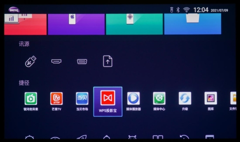 使用智能投影仪,这些问题就迎刃而解了,只需要一根电源线就能开投,免去连接、调试的环节,通过无线网就能连接各种设备进行实时投屏。而且在智能系统的加持下,员工还能在应用市场下载WPS投影宝等各类办公软件,打开投影就能从首页进入,大大提高效率。
