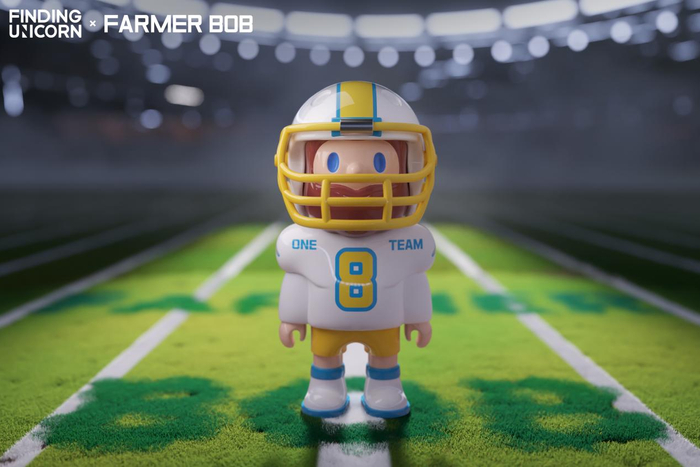 据悉,本次在日本东京发售的300%橄榄球员BOB,系FARMER BOB与日本知名潮流单元atmos合作发售。整体设计巧妙地将FARMER BOB的农夫形象与橄榄球员造型相融合,充分运用了橄榄球运动中独有的头盔、肩垫等护具元素,使用白、黄、蓝的亮眼配色,完美呈现出运动中的对抗美学,生动展示了橄榄球员无畏精神的极致魅力与FARMER BOB坚定自我的潮流态度。