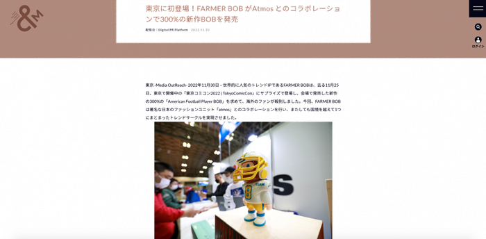 此外,本次FARMER BOB海外发售所亮相的Tokyo Comic Con 2022(2022东京漫画展),是全球极具规模的漫展盛宴。该展会不仅有许多全球知名漫画家和好莱坞演员亲临现场,还吸引一众知名的动漫主题厂牌出展,玩具、收藏、服飾等各国各类限量周边齐齐亮相。300%橄榄球员BOB于此发售,不仅让FARMER BOB又一次站上了国际舞台,更收获了无数海外粉丝的青睐。