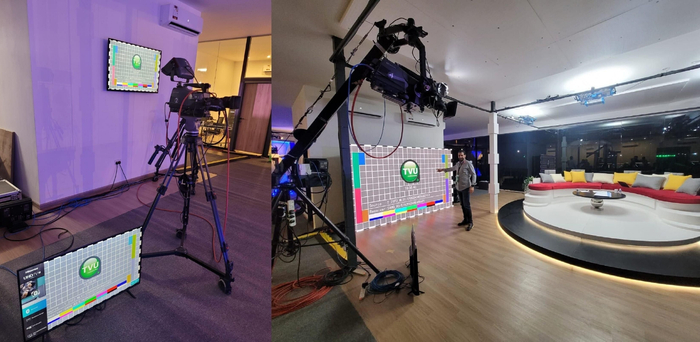 临时演播室屏幕上的TVU待机画面