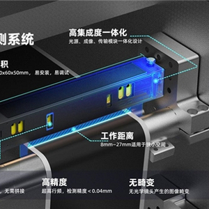 1、开发集成一体化的微距线扫相机。该相机高度集成,集传感器、镜头、光源于一体,结构紧凑,安装调试简单方便,安装结构标准化,调焦机构模块化。,同时,产品换型也简单方便,能够节省大量调试维护人力成本,保证批量交付的一致性。