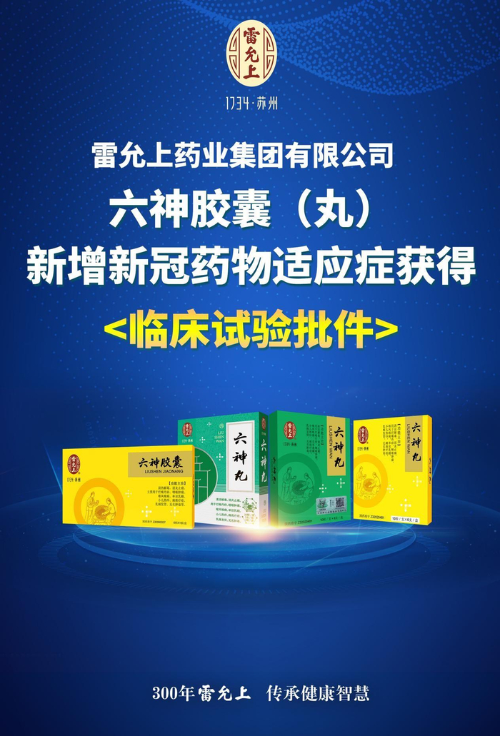 2022年12月1日,雷允上药业集团有限公司微信号发布《重磅!六神胶囊新增新冠药物适应症获临床批件》一文。文章显示:2022年8月,雷允上集团六神胶囊新增新冠药物适应症获得了中国国家药监局颁发的临床批件,目前公司已启动该药物临床研究相关工作。雷允上集团将联合项目组采用多中心、随机、双盲、安慰剂对照临床研究评价六神胶囊治疗新型冠状病毒肺炎患者的有效性和安全性。