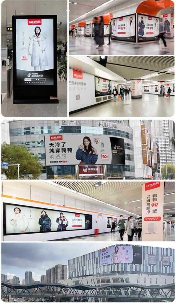 不止于线上,鸭鸭把YAYA鸭鸭×抖音电商超品日印象新名片带向各个城市。在北京、上海、广州、成都、武汉、重庆、合肥、南京等核心城市商圈引来诸多人驻足观看。同时,占领最大的线下流量入口,在北、上、广、杭楼宇进行集中爆发,总曝光超2亿人次。