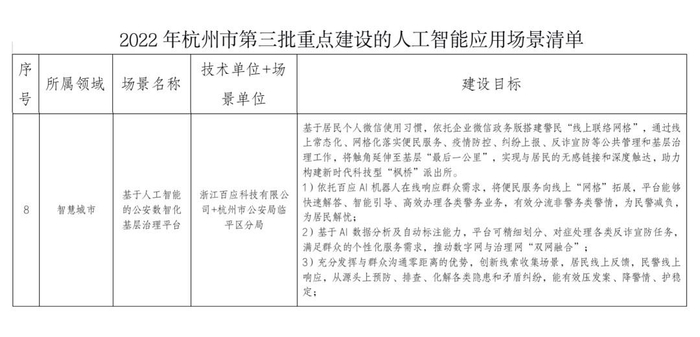 百应科技项目入选2022年杭州市第三批重点建设人工智能应用场景