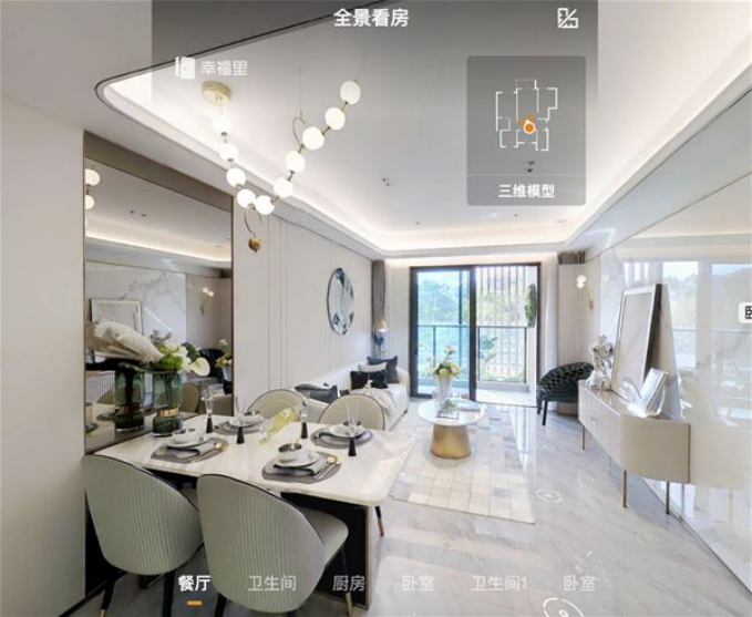 说到先进看房工具就不得不提VR看房。目前幸福里已经上线了VR看房功能,其空间VR产品“临选”应用可以做到让用户足不出户,在线身临其境的浏览房间的每一个细节。