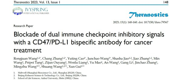 迈威生物在 Theranostics 发表CD47/PD-L1双抗临床前研究成果