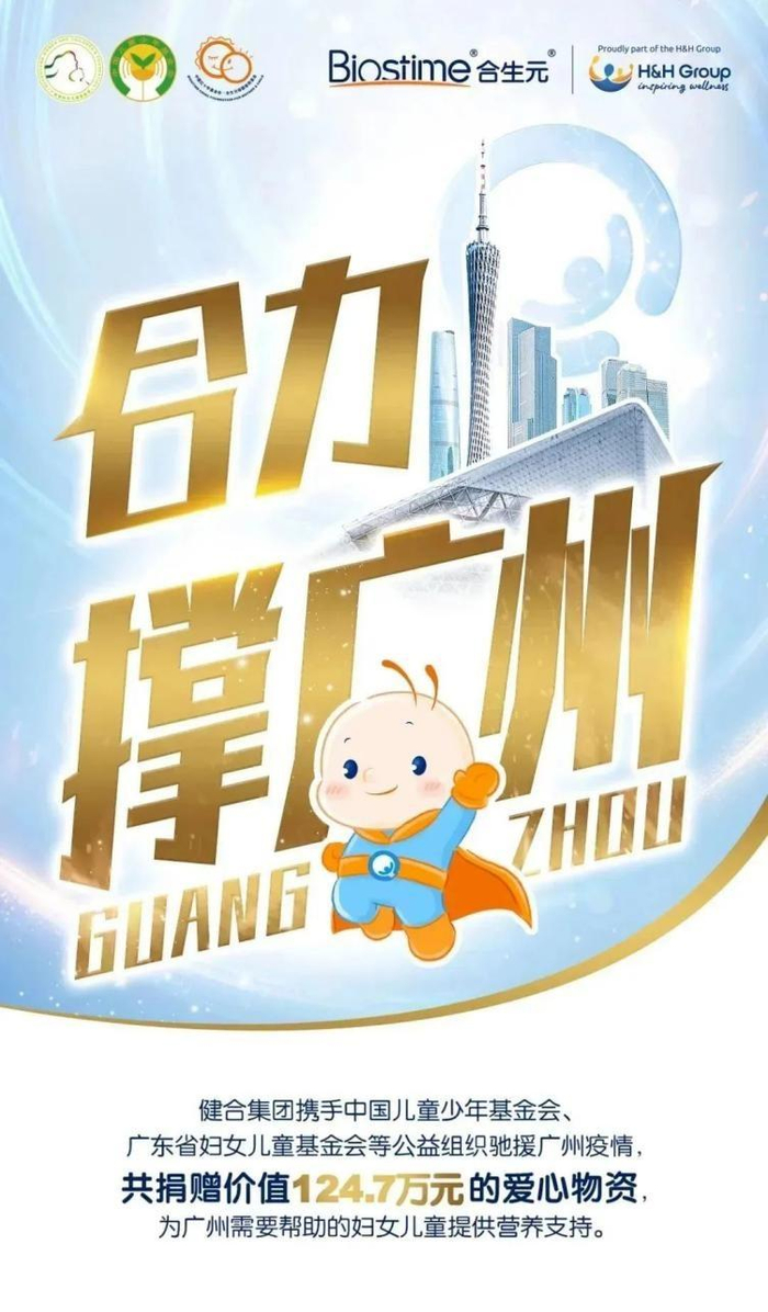 星火相助,人间有爱。面对广州近期的疫情挑战,社会各界同心聚力,积极行动。为全力守护全家庭营养健康,健合集团第一时间组织“合力撑广州”公益项目,供针对广州疫情,联合中国儿童少年基金会,广东省妇女儿童基金会等公益组织发起公益捐赠,共捐赠了价值124.7万元 的抵抗力公益礼包,为广州市受疫情影响区域的母婴家庭提供营养支持。并且,健合集团携手门店协同合作,全力保障供应和供货配送,对全广州进行家庭名单收集和宝宝口粮供应,在保供应、驰援捐助的攻坚战中不断贡献着企业力量。