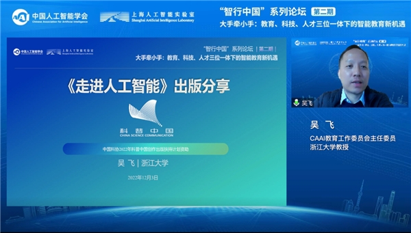在论坛中,由中国科协2022年科普中国创作出版扶持计划支持,高等教育出版社出版,浙江大学吴飞教授编写的《走进人工智能》科普通识读物新书正式发布。