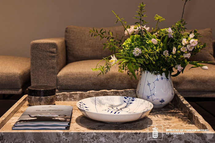 午宴以美食美酒为媒介,哥本哈根的手工陶器品牌Bergs Potter、百年丹麦皇室御用银艺品牌GEORG JENSEN乔治杰生;全球奢华视听品牌 Bang & Olufsen;代表奢华生活方式的丹麦皇室瓷器品牌Royal Copenhagen;功能与艺术兼具的可持续品牌UMAGE;以优雅的锥形蜡烛和精致的烛台而闻名的ester& erik,丹麦功能美学的的代表之一VIPP,携手将“童话之国”——丹麦的生动生活场景在远隔重洋的上海完美重现。上海森SEN餐厅餐饮主理人、行政总厨郑光彬(Sandro Zheng)利用丹麦的优质食材倾力打造为午宴菜品,其中包括蓝罐(Kjeldsen’s)曲奇、拥有130多年历史的丹麦皇冠(Danish Crown)猪肉、皇家格陵兰(Royal Greenland)虾仁和比目鱼、利斯(Thise)有机奶酪、以及安裴丽克(Empirical)酒精饮料,为宾客们带来一次丹麦生活方式的沉浸式体验。匠心别具的设计美学、精心烹制的美味菜品,演绎出简约舒适、自在自由、与自然和谐相处的美好,传递出丹麦对可持续设计和制造的执着追求。