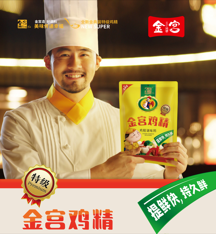 品质争“鲜”:金宫在产品生产上实行精益生产,断改良生产工艺,确立先进管理模式,做出精致产品,为更多人提供健康、美味、方便的调味精品。旗下的金宫特级鸡精,提鲜快,持久鲜,充分体现了品质争“鲜”特质。