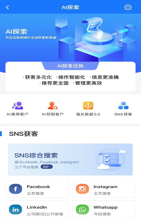 AI探索功能助力移动端主动获客,以往想要AI挖掘新客户需要登录外贸快车PC端后台,现在外贸快车APP也同步了这项功能。在新版外贸快车APP中,用户可以通过输入产品、行业、公司名称等关键词来精准获取相关采购商(企业)在国内外各大主流平台公开的有效信息,操作更便捷,获客更高效,真正实现随时随地主动获客。