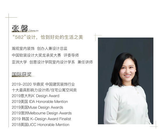 设计师张馨,从事室内设计行业已20余年,其设计作品多次获得意大利、英国、美国、澳洲等国际设计奖项肯定。