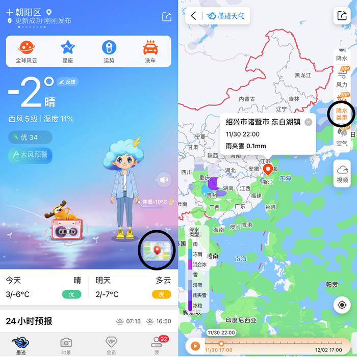 墨迹天气上线“降水类型”新功能,贴心提示出行雨雪状态