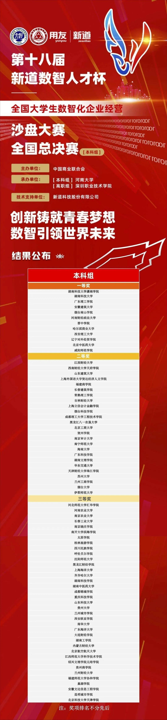 第十八届“新道数智人才杯”全国大学生数智化企业经营沙盘大赛全国总决赛(本科组)获奖名单