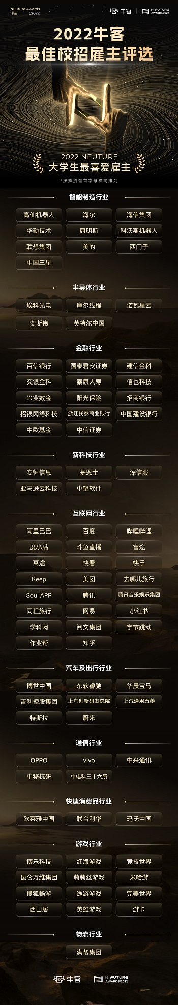牛客2022 NFuture最佳校招雇主榜单揭晓!应届毕业生会喜欢怎样的雇主品牌?