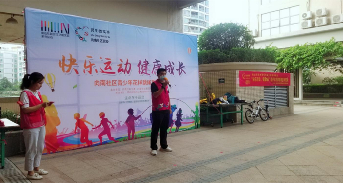本次跳绳活动由向南社区党委、社区居民委员会主办,深圳远帆培训服务有限公司承办。活动从跳绳最基本的动作开始,由专业的教练带领青少年学习握手柄、摇绳等,逐步激发青少年的兴趣和运动潜能。在青少年适应之后,由教练讲解单双脚跳、花样跳、双人跳、集体跳、等进阶的跳绳动作。学员们在教练的组织下,跟着教练的节奏,认真学习跳绳的花样动作,不断地练习跳绳技巧,一根根彩绳飞舞,一个个学员跳跃,活动现场一片欢腾。