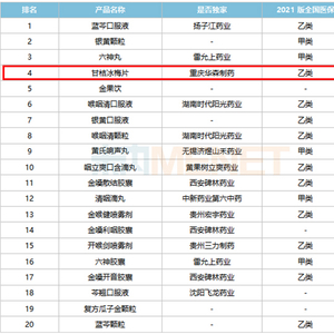 咽喉中成药TOP20火热出炉! 独家医保品种华森制药甘桔冰梅片荣誉上榜!
