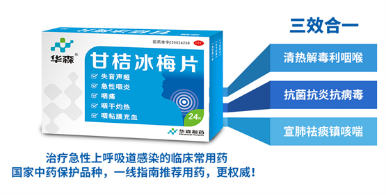 甘桔冰梅片作为华森制药独家中药品种、国家中药保护品种,国家医保品种咽喉类专用药,尤其对急慢性咽炎、急慢性喉炎、急性扁桃体炎、声带小结、声带息肉、反流性咽喉炎等疗效突出,市场占有率高,是《中医耳鼻喉科临床诊疗指南》与《中成药临床应用指南·耳鼻咽喉疾病分册》等多个指南共识推荐用药,并被多个省、市纳入方舱医院用药。