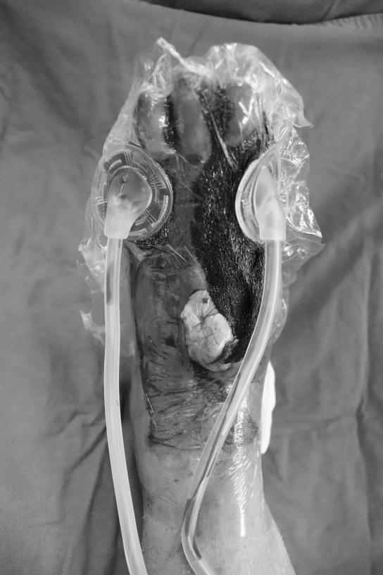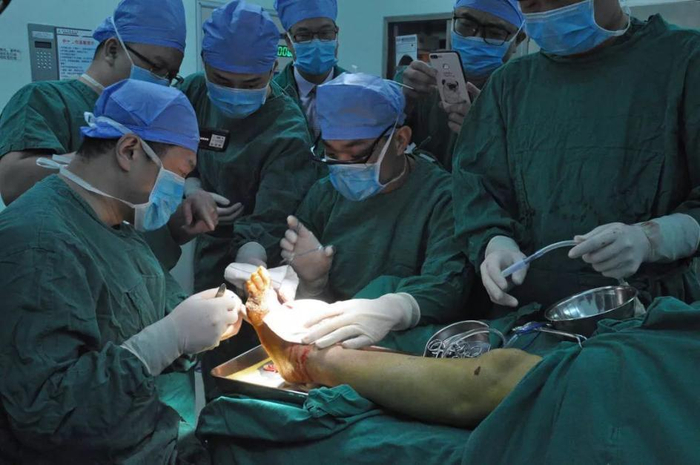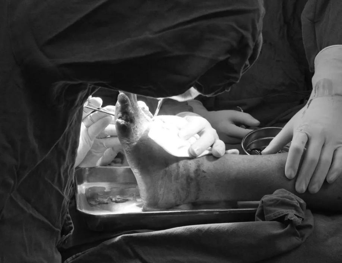 “针对糖尿病的发病原因,如果有感染第一要清创,我们现在的新技术就是利用Masquelet技术(骨水泥技术),清创完后,用载有抗生素的骨水泥填塞空腔,消灭了死腔之后,就不会有血块在空腔中,也不会有细菌在里面繁殖。”高主任说,同时,手术做的是功能性截肢,就是保留她的足跟,尽量把足跟留下来,她就可以自己走路了。