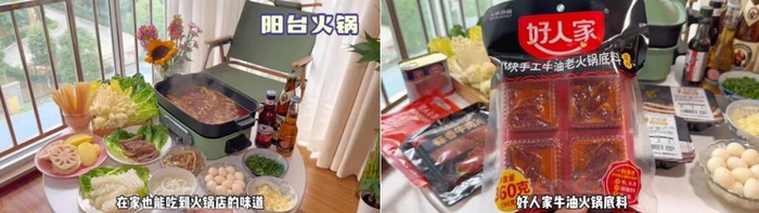 便是好人家的牛油老火锅底料,在家就能吃到纯正老火锅的味道。在阳台慢慢吃火锅,品味有烟火气的悠哉生活,便是她眼中恋爱的味道。