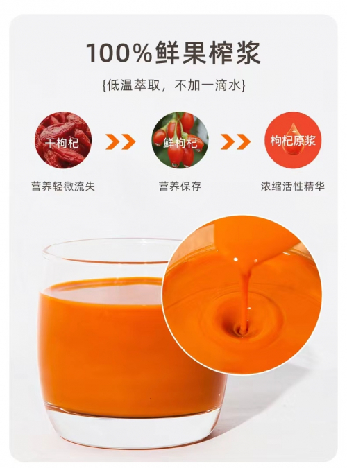 选用有机枸杞,鲜摘鲜榨营养高