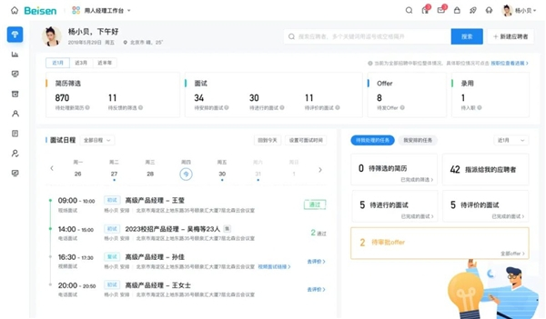 比如:传统招聘模式下,HR想要调动业务经理资源参与面试,需要反复沟通协调时间,通过工作台,业务经理能够自主预约面试,或指派其他业务经理面试任务,自主性、灵活性都显著提高。“今年我们统计了业务经理校园招聘的参与度,有明显上升,这得益于数字化的平台使流程更透明,自主性更强”,刘旭补充道。