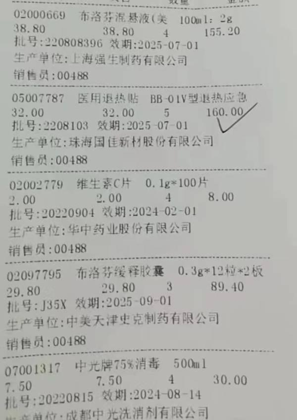 “这款兵兵退烧贴,我家孩子从出生就在用,效果真的挺好。政策一放开我就赶紧来囤药了。屯够了才能安心撒。”在王女士的购药清单里,卖给孩子的有4瓶100ml美林,5盒兵兵退热贴和4瓶维生素片。