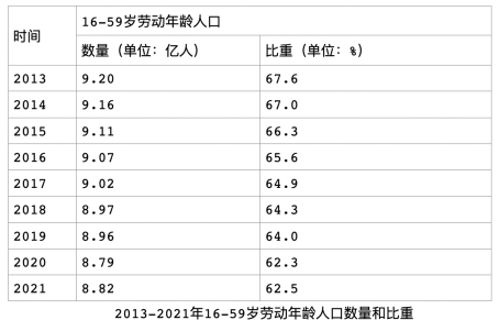 首先,我国的人口红利和人口增长曲线正在快速衰减,这一趋势已无需再赘述。具体到就业人口,也就是信用卡主要覆盖的用户群体。数据显示,2013-2021年,我国劳动年龄人口的数量和比重整体呈现下降趋势。
