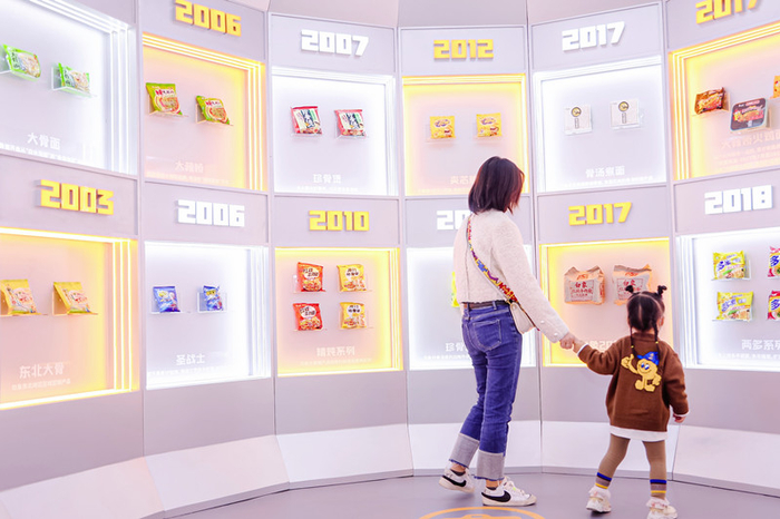 除此之外,打卡「白象历史馆」还可以一次性浏览白象25年生产制造过的宝藏方便面产品,不仅能获得被泡面270°包围的满足感,也能勾起一波回忆杀。而在每一款产品背后,都离不开每一位白象人的辛勤劳动。