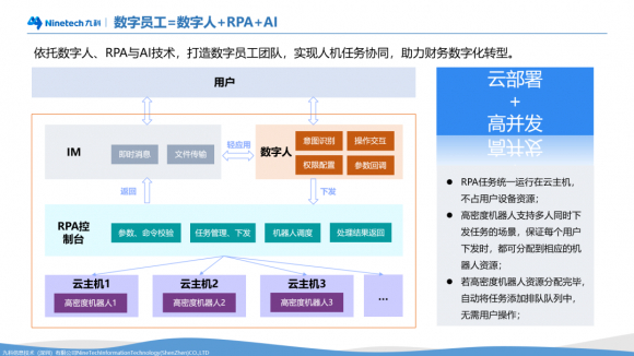 此次分享的是九科信息为一家世界五百强超大型央企集团部署RPA数字员工的案例。数字化劳动力的优势在于可以降低运营成本、提高生产效率、提升用户体验。当前企业积极寻求降本增效措施以应对经济寒冬,数字化劳动力应用成为热门议题,九科信息根据客户的业务痛点,为其定制了RPA+数字人解决方案。