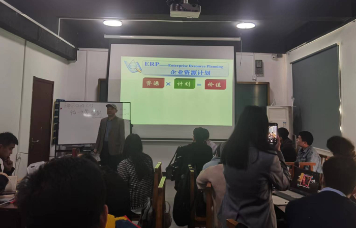 开班仪式后,由张前教授通过为期两天的企业数智化转型模拟课程,带领学员们开启向ERP实施顾问蜕变的学习征程。基于用友新道企业数智化转型沙盘平台,让学员们模拟加入同一行业中竞争的若干企业,分别担任营销总监、生产总监、财务总监、人力总监岗位。制定企业的长、中、短期策略,参与产品研发、生产、市场、销售、财务管理、人力资源管理等工作,在模拟运营中体会和应用复杂、抽象的经营管理理论。通过企业信息化、数智化转型、全面数智化等三个经营阶段,直观体验并全面了解新一代数字与智能技术给企业带来的生产变革、经营变革和管理变革。