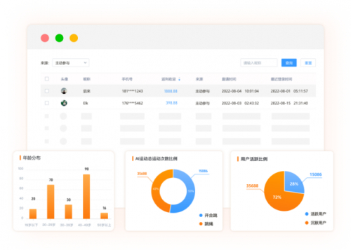 赛事、商城、用户等数据支持生成智能化、可视化的数据报表,支持随时下载,通过多维分析及时掌握全盘业务;