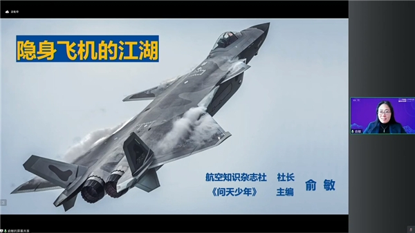 在主题分享环节,俞敏以《隐身飞机的江湖》为题作分享,介绍了国际、国内隐身飞机的发展历程,以及中国航空航天技术崛起时段。她表示,中国航空航天技术与世界先进国家相比,经历了从“望尘莫及”到“望其项背”,再到如今“同台竞技”的发展阶段,战机技术水平实现了从进口到自主研制的突破。其中,最新亮相的双座版歼20,不仅能够指挥无人机作战,在技术标准方面也超越了五代机,是世界上第一款双座隐身飞机,充分展示出我国航空航天技术的实力,相信未来将会有更多的航空航天技术走向世界。