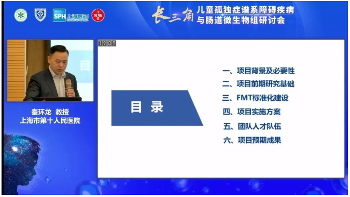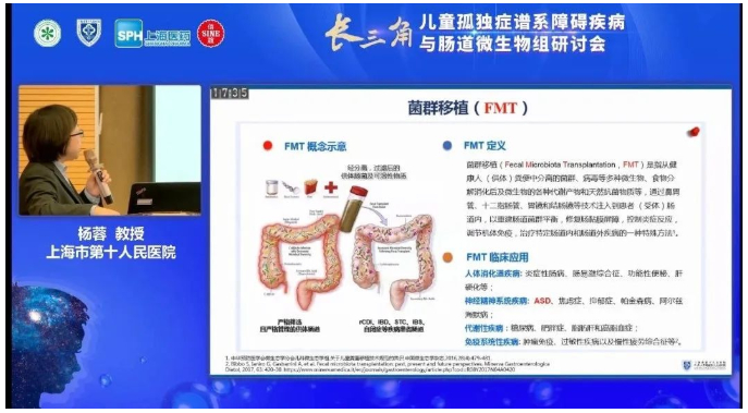 会议最后,上海第十人民医院儿科杨蓉主任为大家介绍了当前肠菌移植疗法在临床上的应用、供体的筛选和规范化探索。杨主任表示,未来十院在肠菌移植领域将不断投入建设,为孤独症儿童提供更好的治疗方案,提高治愈率。