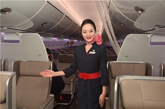 东航为全球首架C919配备了两舱布局,164座,包括8个公务舱和156个经济舱,均选用完全自主研发的新一代国产客舱座椅。“乘坐舒适宽敞”将是C919今后服务旅客时鲜明的亮色——公务舱座椅为全铝合金框架结构,采用摇篮式设计,后靠可达120度、前后座椅间距超过1米;经济舱设计匠心甚至更让人惊艳:国际主要窄体机型的经济舱中,每排2组3联座椅的中间座位,因空间局促往往不受旅客青睐。而东航C919经济舱三联座中间座位比两边宽1.5cm,“中间座最宽”的人性化设计,用“一指宽度”让旅客多一分舒适。