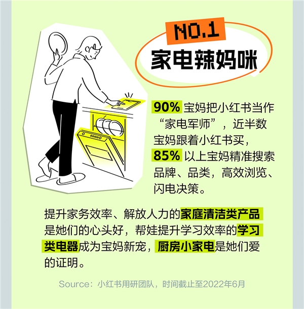 90%的宝妈通过小红书3C家电相关内容攻略做出购物决策,家电清洁类产品、学习类产品和厨房小家电是她们重点关注的产品类型。