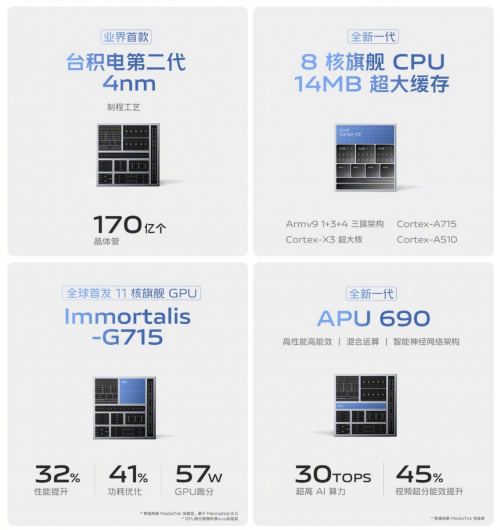 性能方面,vivo X90系列搭载全新一代8核旗舰CPU「天玑9200」,并与MediaTek深度联合研发5大芯片技术,性能跑分高达128W,整体功耗相比天玑9000下降25%以上,带来高性能,高能效,低功耗的旗舰体验!